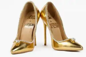 Авторы пары — коллаборация брендов Jada Dubai и Passion Jewellers. Остроносые ботинки на шпильке изготовлены из настоящего золота и украшены 15-каратным алмазом, обрамленным россыпью из 236 малых бриллиантов. «Мы желали создать воистину неповторимый экземпляр», — прокомментировала одна из основательниц Jada Dubai Мария Маджари (Maria Majari).
